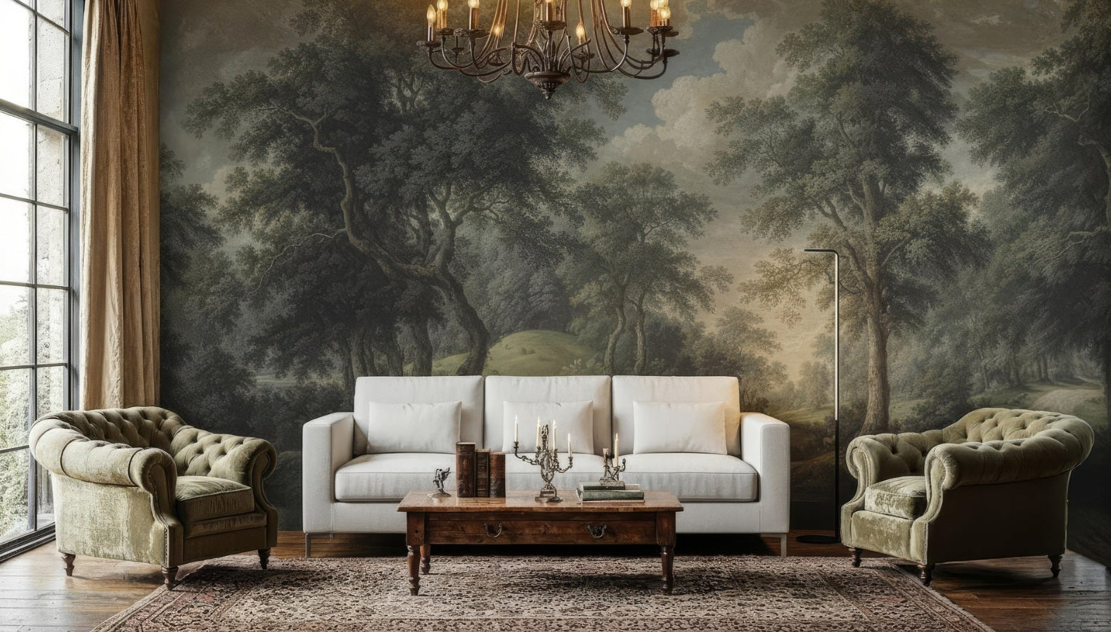 Vintage Botanical Trees Landscape Peel and Stick Wall Mural Wallpaper